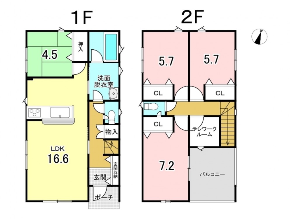 - システムキッチン、カウンターキッチン、シャンプードレッサー、浴室乾燥機、モニタ付インターホン、洗浄便座、駐車場2台分、床下収納、トイレ2箇所