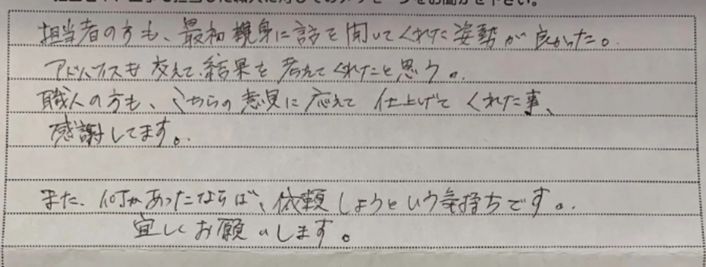職人の方も、こちらの意見に応えて仕上げてくれた事、 感謝してます。