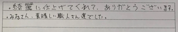 綺麗に仕上げてくれてありがとうございます。みなさん、素晴しい職人さん達でした。