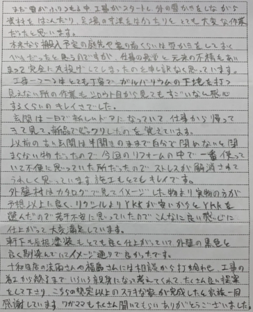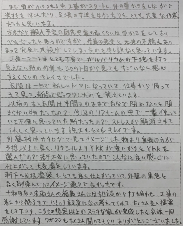 工事の着工から終了までいろいろ親身になって考えてくれて、たくさん良い提案をして下さり、