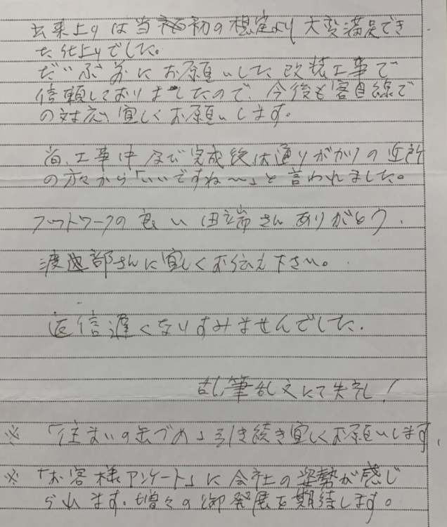 以前の工事から変わらぬ信頼を寄せていただき、心より感謝申し上げます。